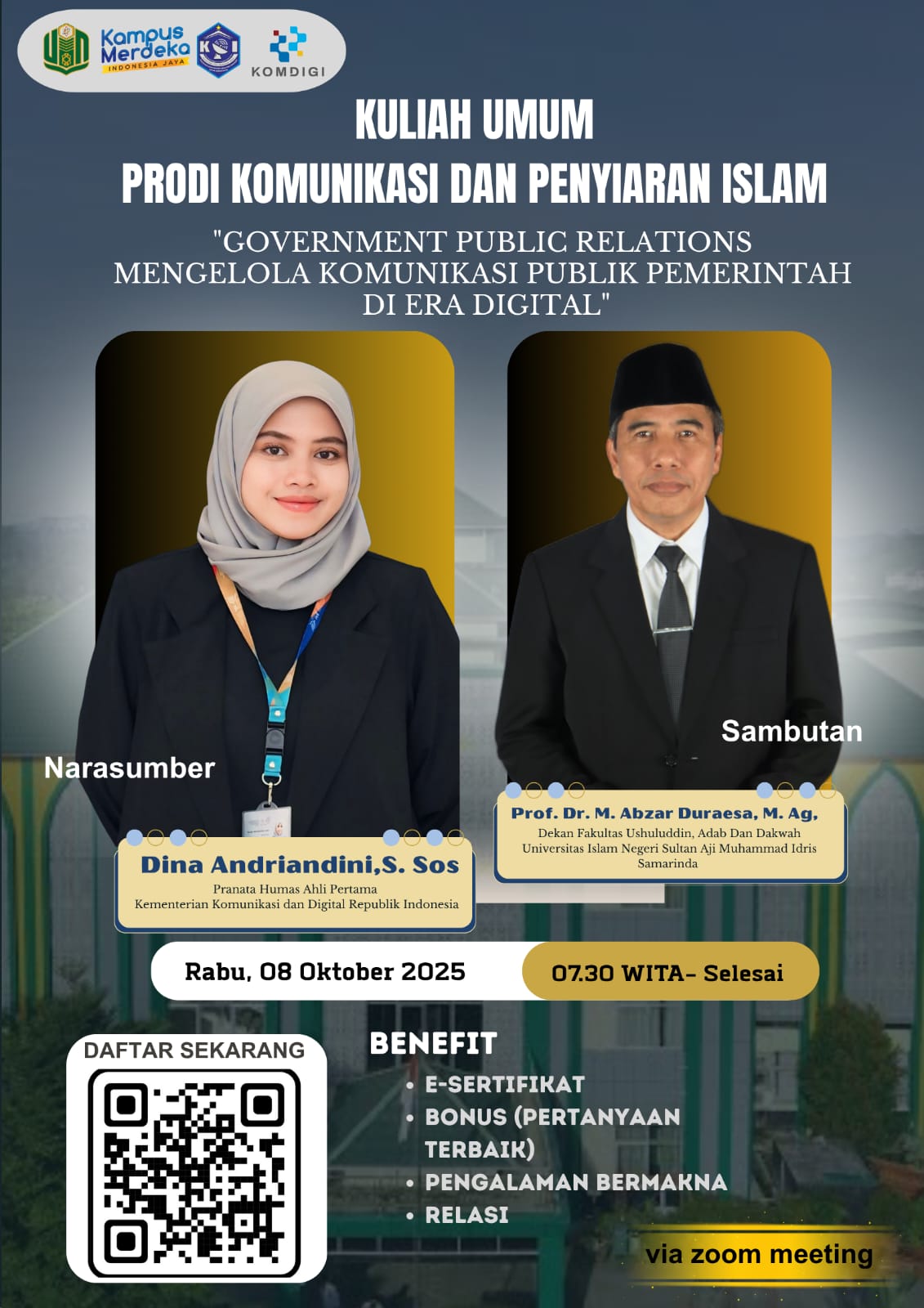 Rahma juga sampaikan kesan pesan untuk teman-teman mahasiswa agar supaya lebih fokus pada niat dan proses dibanding dengan hasilnya.