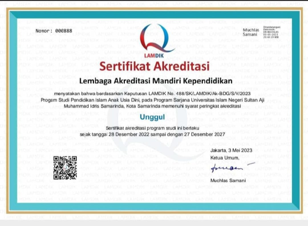 Selain itu, akreditasi unggul ini juga menjadi jaminan kualitas pendidikan bagi mahasiswa yang menempuh pendidikan di UINSI, khususnya di Program Studi PIAUD FTIK UINSI Samarinda.