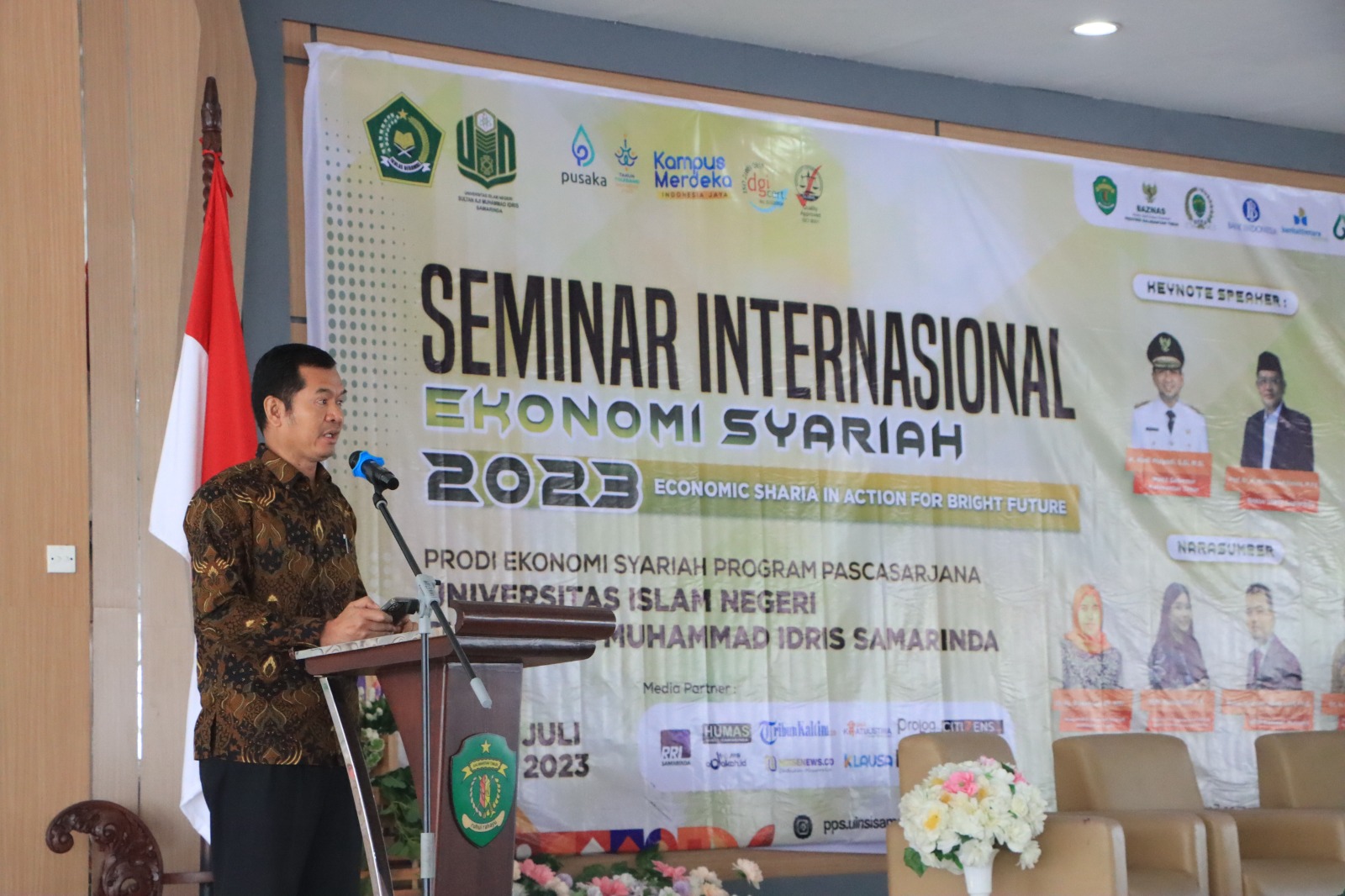 M. Tahir, Direktur Pascasarjana UINSI Samarinda membuka acara secara resmi dan menghaturkan terimakasih kepada Program Studi Ekonomi Syariah yang telah menyelenggarakan kegiatan internasional inisiatif dari unsur mahasiswa secara swadaya.