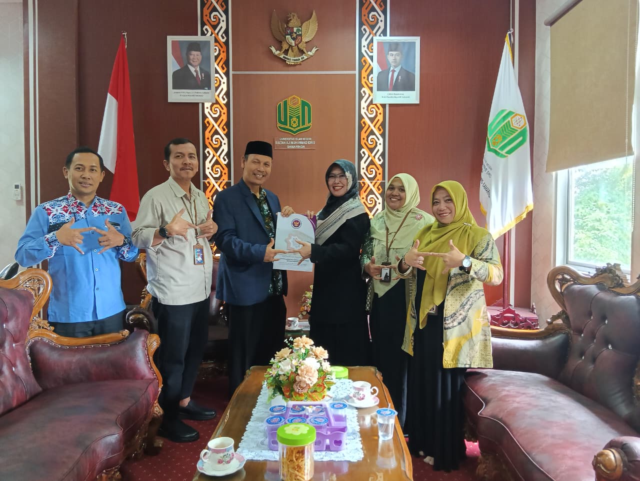 Penyerahan Sarpras ini disaksikan oleh Rektor, Wakil Rektor Bidang Akademik dan Pengembangan Kelembagaan, Wakil Rektor Bidang Kemahasiswaan Alumni dan Kerja Sama, Kabag Umum dan Layanan Akademik, Kabag TU FUAD, dan Ketua Tim Kerja Kerumahtanggaan beserta staf di Lobby Lantai 1 Gedung Rektorat Kampus 2 UIN Sultan Aji Muhammad Idris Samarinda.