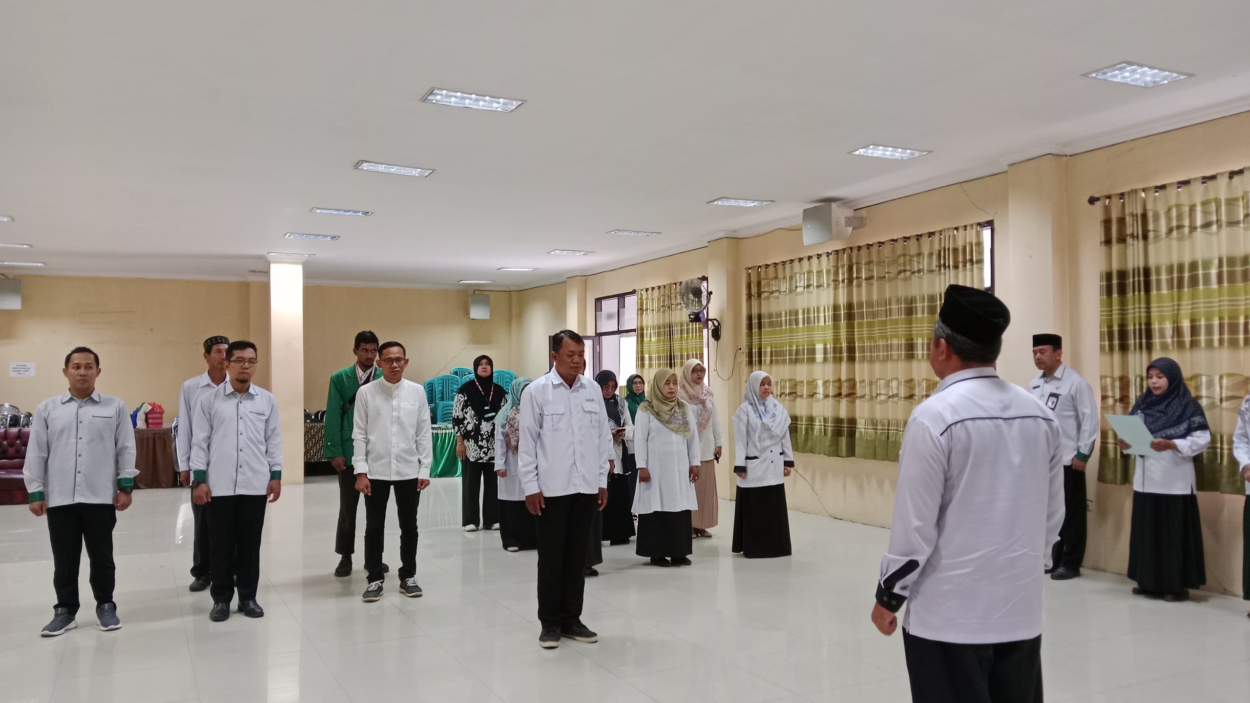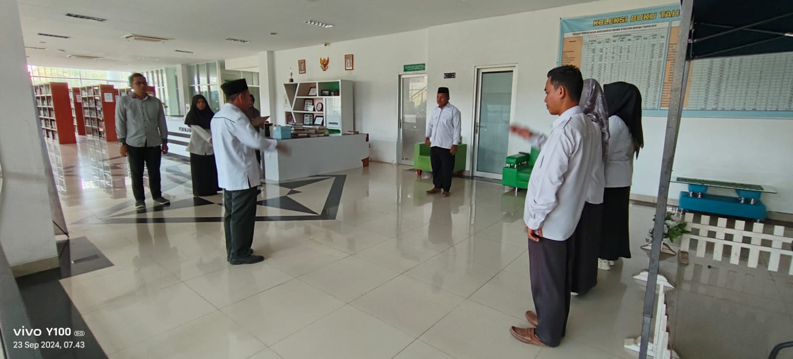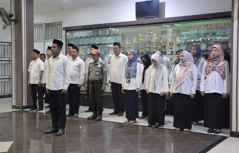 SAMARINDA, UINSI NEWS,- Prof. Dr. Zurqoni, M.Ag., Rektor UIN Sultan Aji Muhammad Idris Samarinda pimpin apel pagi di Unit Rektorat. Senin (23/9).
