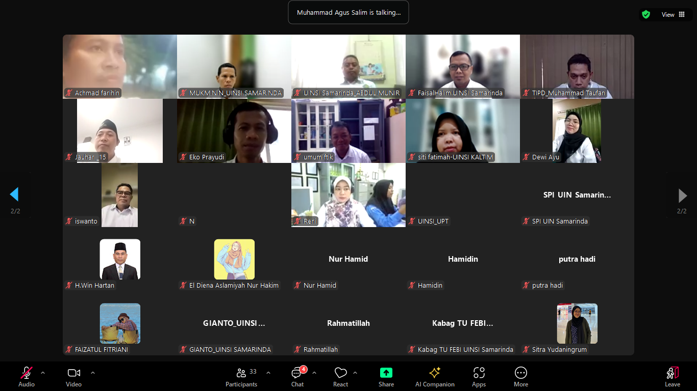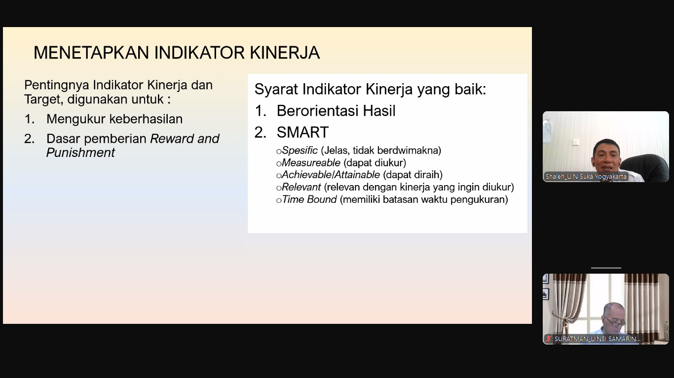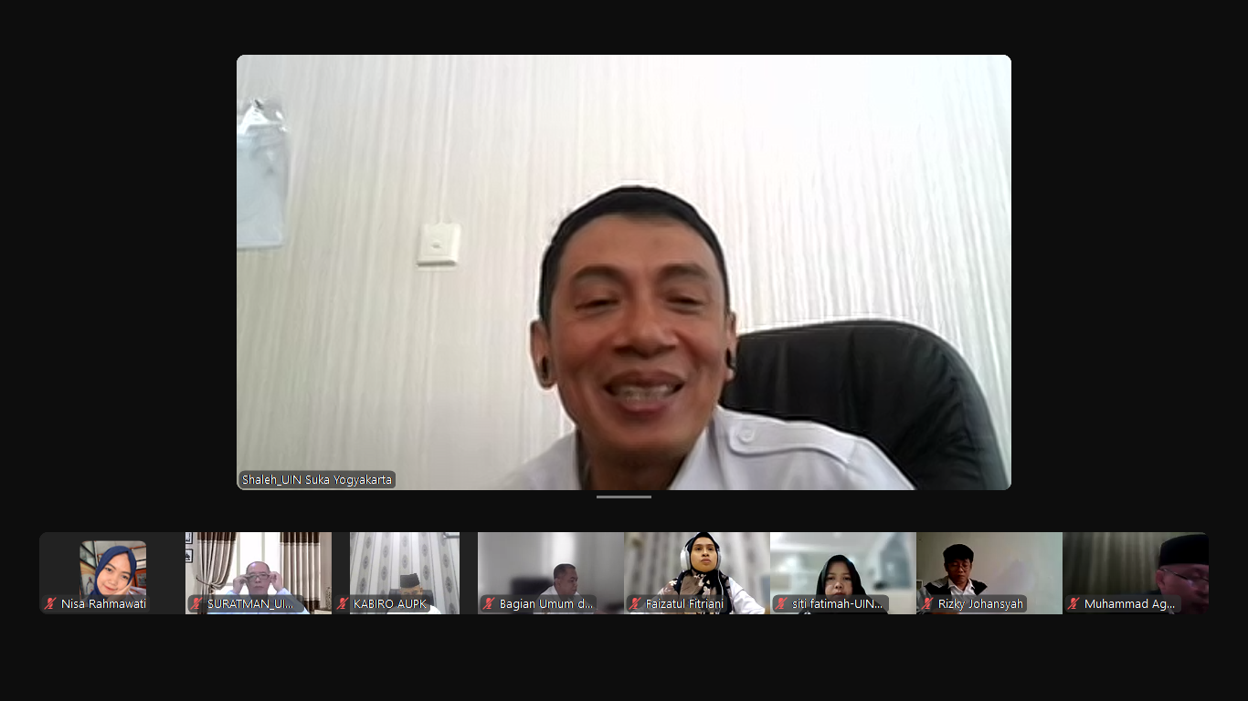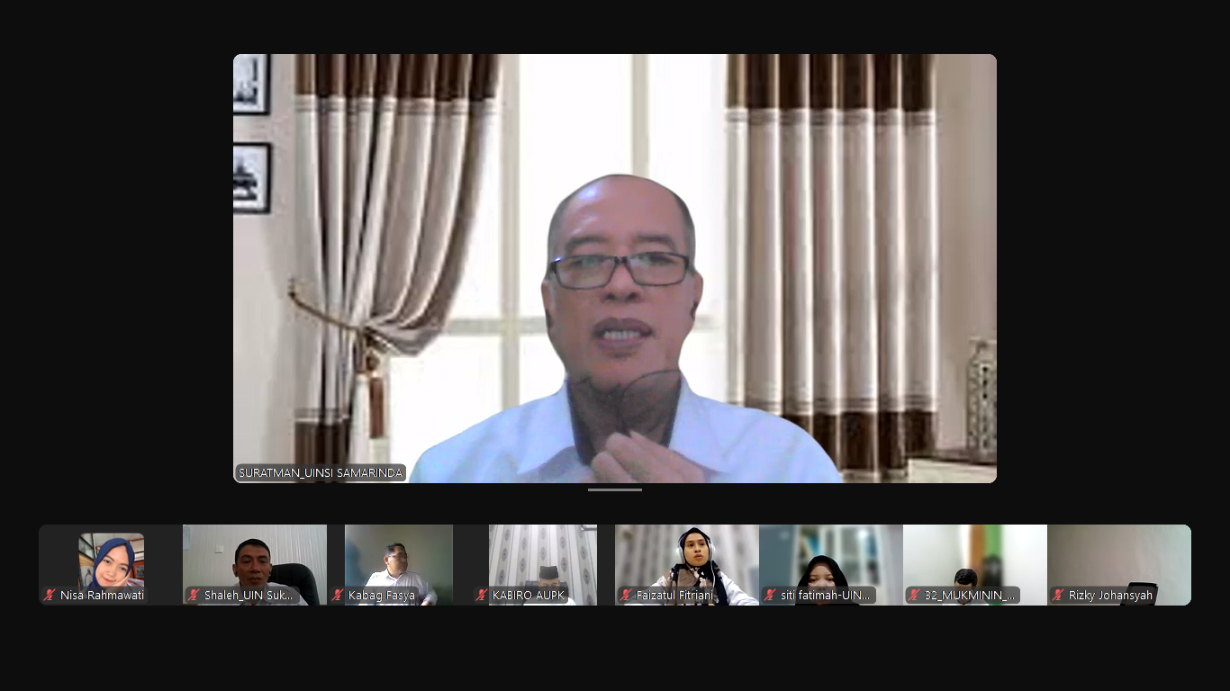 SAMARINDA, UINSI NEWS,- Satuan Pengawas Intern (SPI) UIN Sultan Aji Muhammad Idris Samarinda inisiasi Bimbingan Teknis Review Evidence SPIP dengan menghadirkan Dr. Shaleh, S.Ag., M.Pd., Sekretaris SPI UIN Suka Yogyakarta yang pernah menjabat sebagai Auditor Itjen Kemenag RI, sebagai narasumber melalui zoom meeting, Senin (25/11).