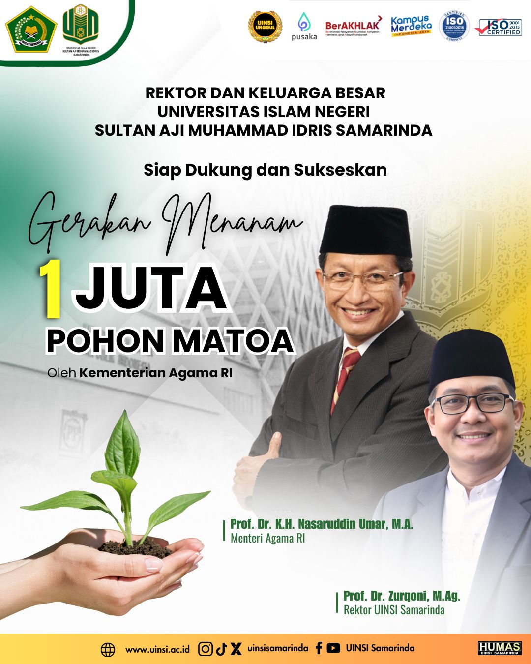SAMARINDA, UINSI NEWS,- UIN Sultan Aji Muhammad Idris (UINSI) Samarinda menunjukkan komitmennya dalam pelestarian lingkungan dengan mendukung penuh program “Gerakan Penanaman Satu Juta Pohon Matoa” yang diluncurkan oleh Kementerian Agama Republik Indonesia. Program ini merupakan bagian dari inisiatif Ekoteologi, salah satu dari delapan program prioritas Kemenag yang tertuang dalam Asta Protas Kemenag Berdampak.