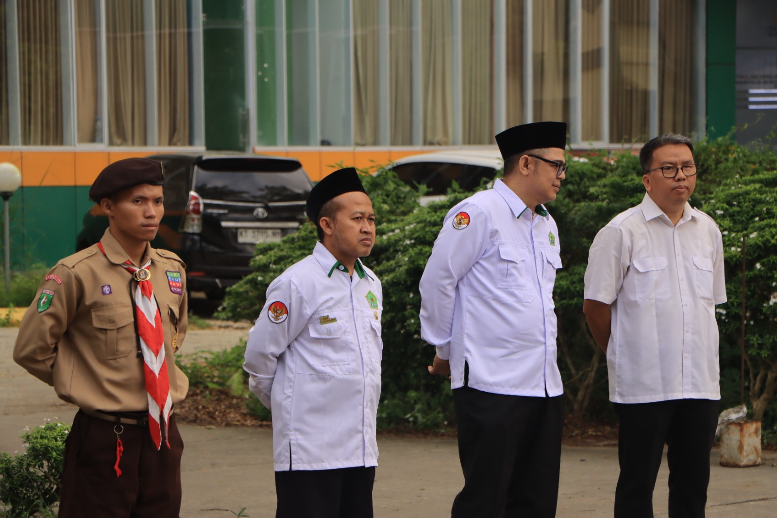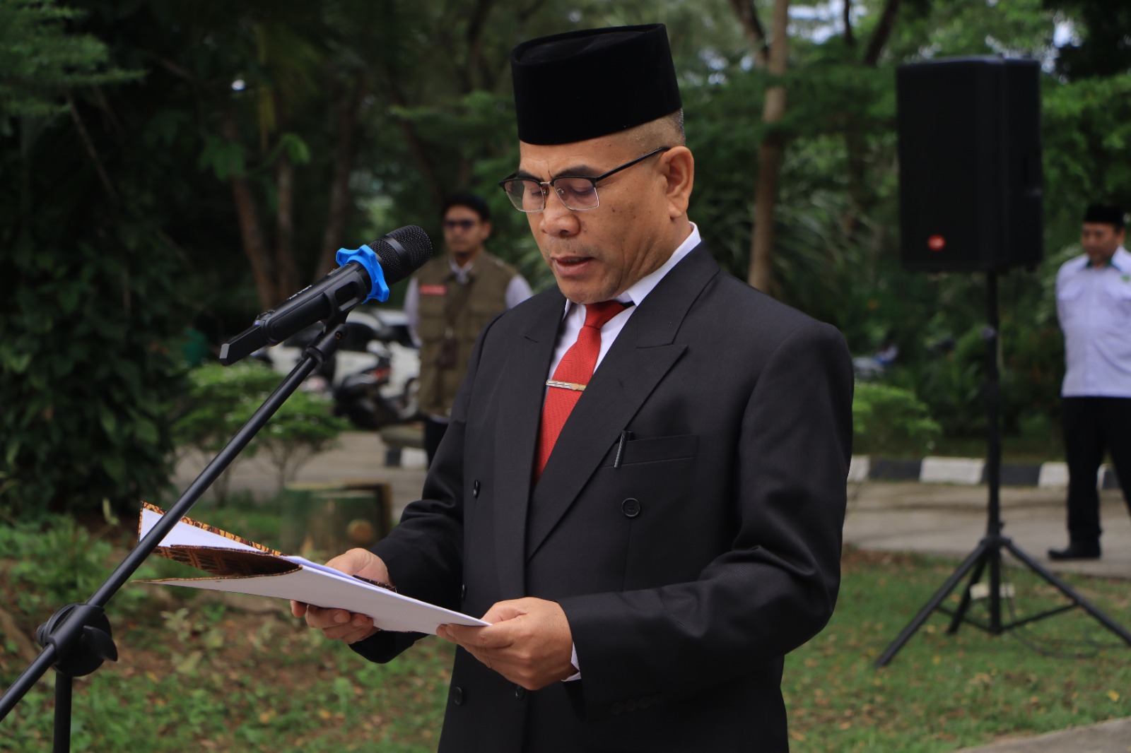 Dr. H. Win Hartan, S.Ag., M.Pd., Kabiro AUPK UINSI Samarinda menjadi pembina upacara peringatan Hardiknas yang mengangkat tema “Partisipasi Semesta Wujudkan Pendidikan Bermutu Untuk Semua” ini.