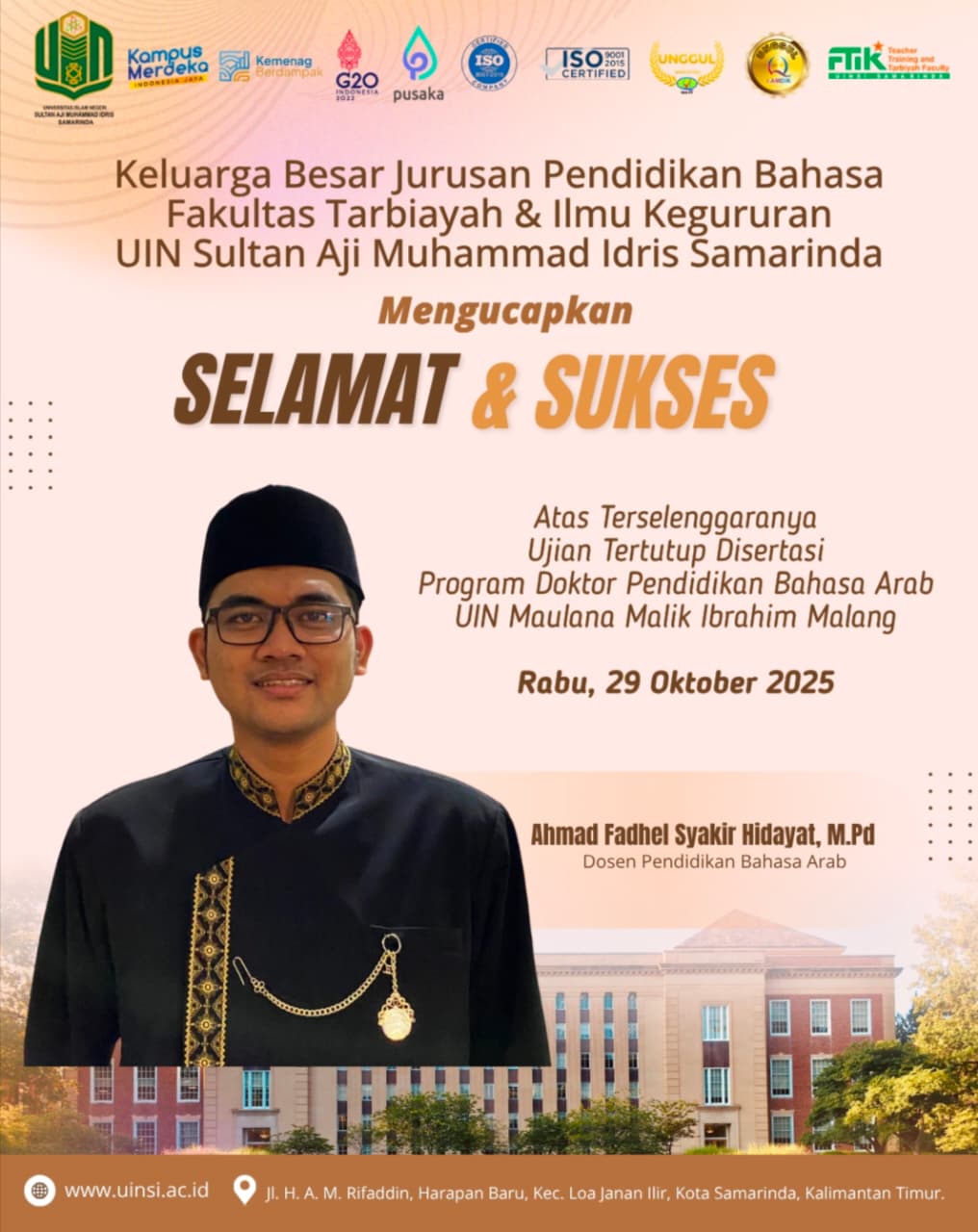 SAMARINDA, UINSI NEWS,- Universitas Islam Negeri Sultan Aji Muhammad Idris (UINSI) Samarinda kembali mencatatkan capaian dalam manajemen pengembangan sumber daya manusia. Sebanyak delapan dosen dinyatakan lolos dalam proses kenaikan pangkat periode Agustus 2025, sebagaimana tertuang dalam surat pemberitahuan resmi B-2027/Un.21/R/KP.01.02/07/2025 tanggal 17 Juli 2025.