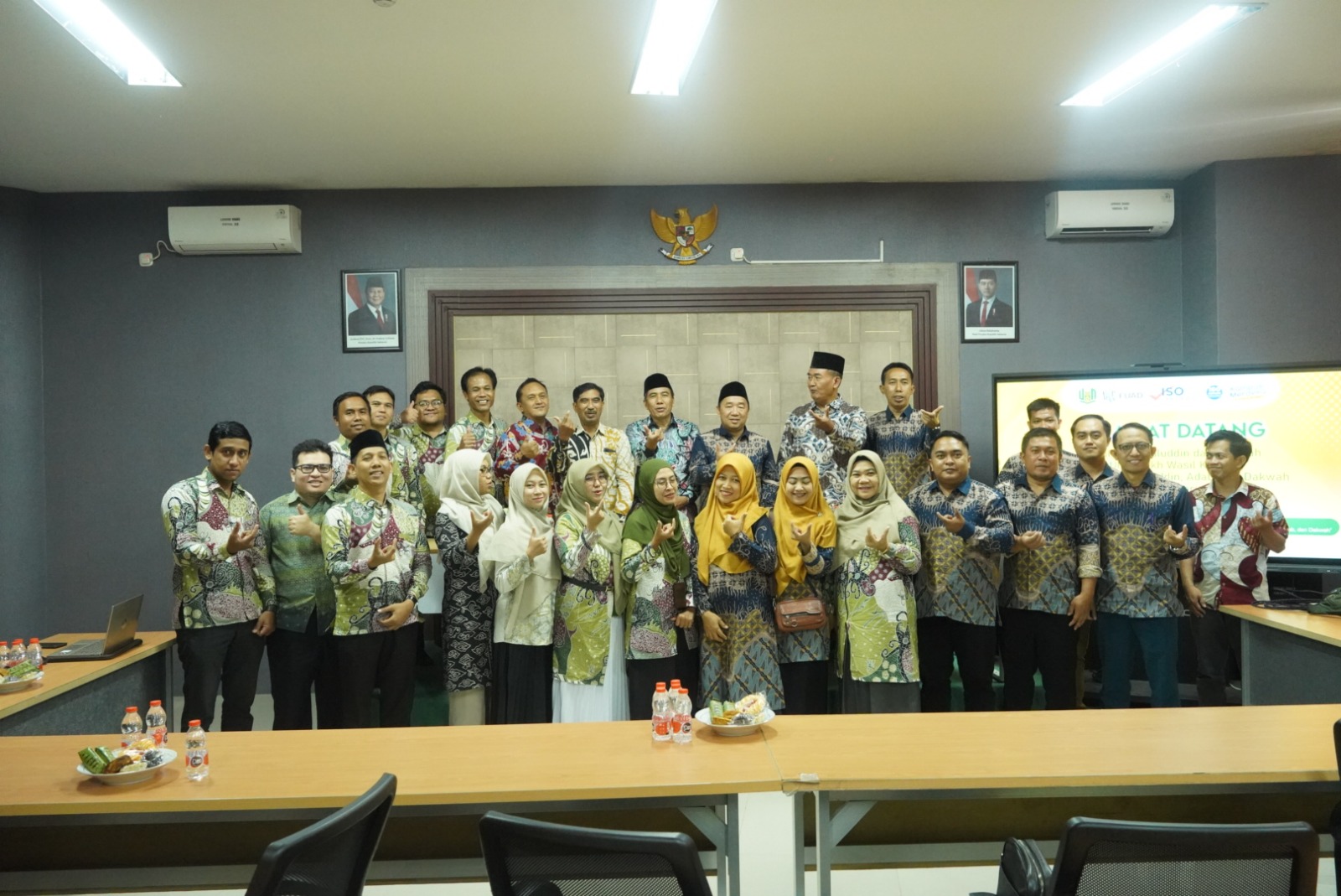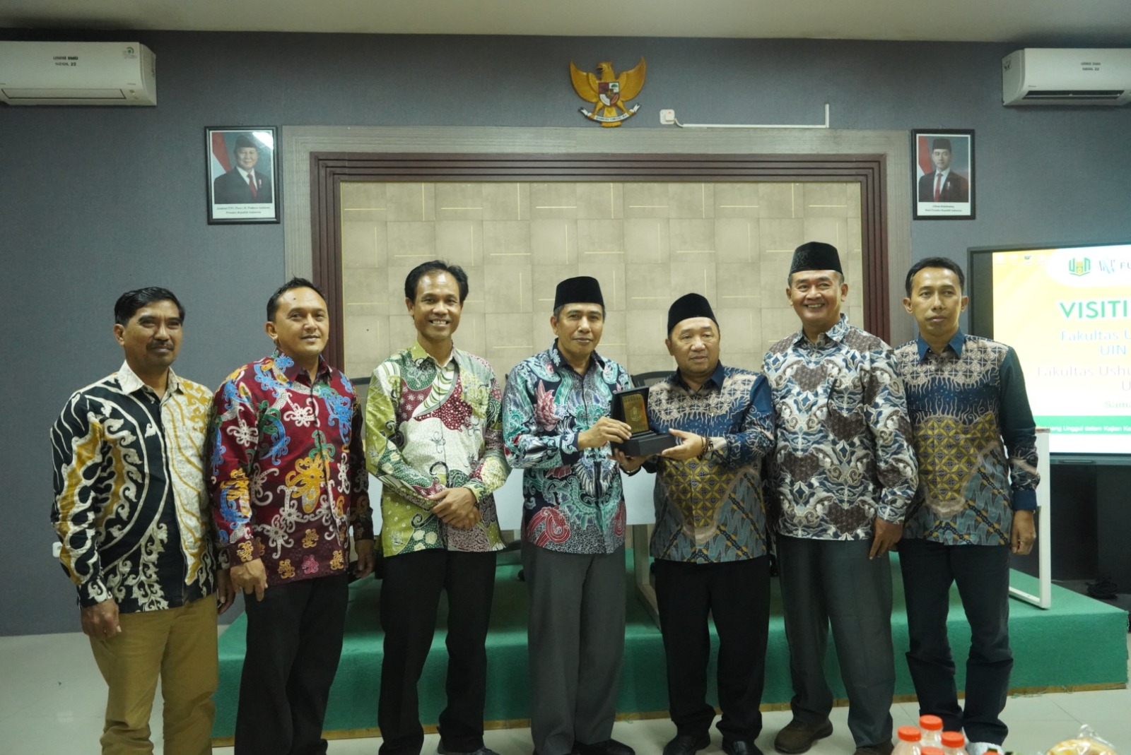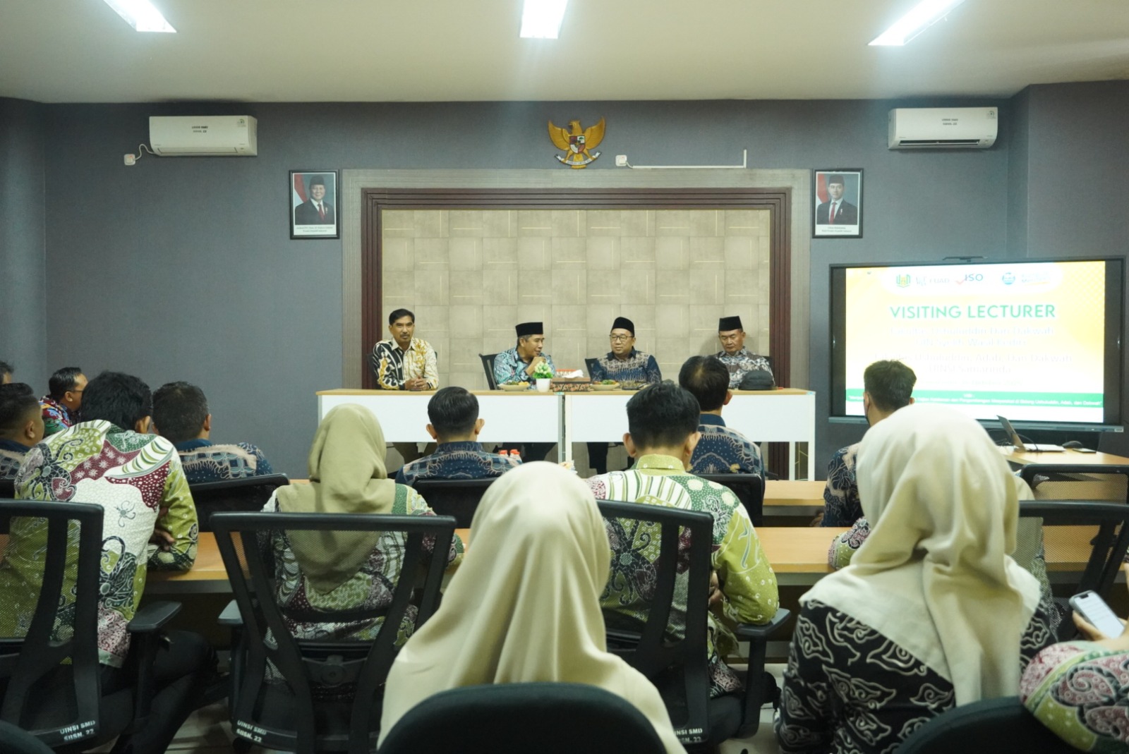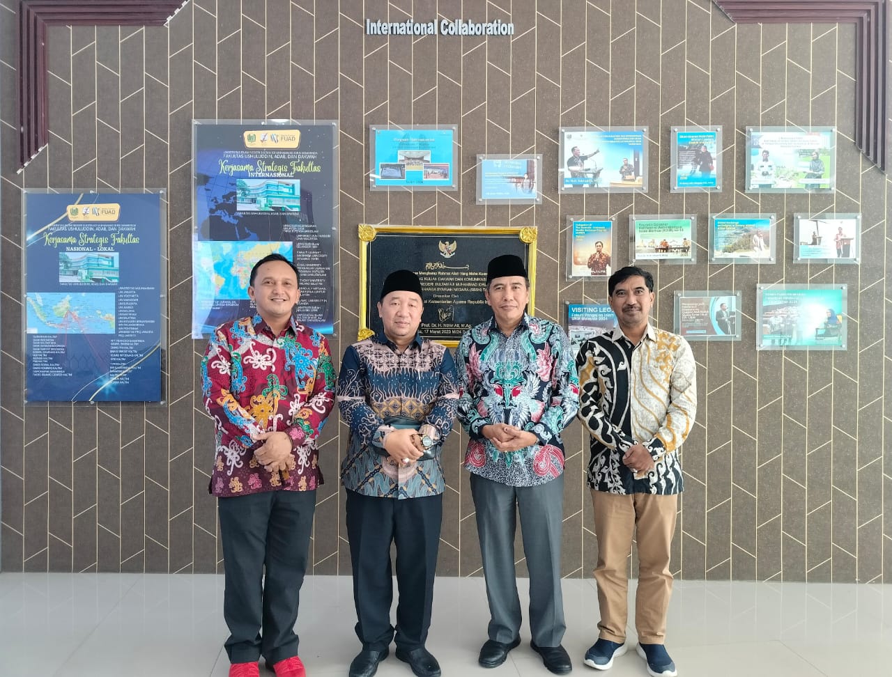 Turut hadir dalam penyambutan, Wakil Dekan Bidang Akademik dan Pengembangan Kelembagaan (APK), Dr. Mursalim, M.Ag, Wakil Dekan Bidang Administrasi Umum, Perencanaan, dan Keuangan (AUPK), Dr. Sugiyono, M.I.Kom, serta Wakil Dekan Bidang Kemahasiswaan dan Alumni (KAK), Dr. M. Salehudin, M.Pd.