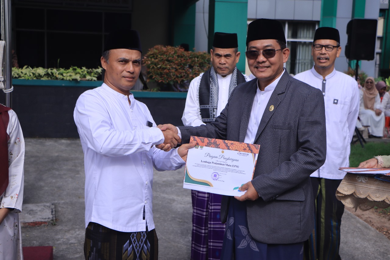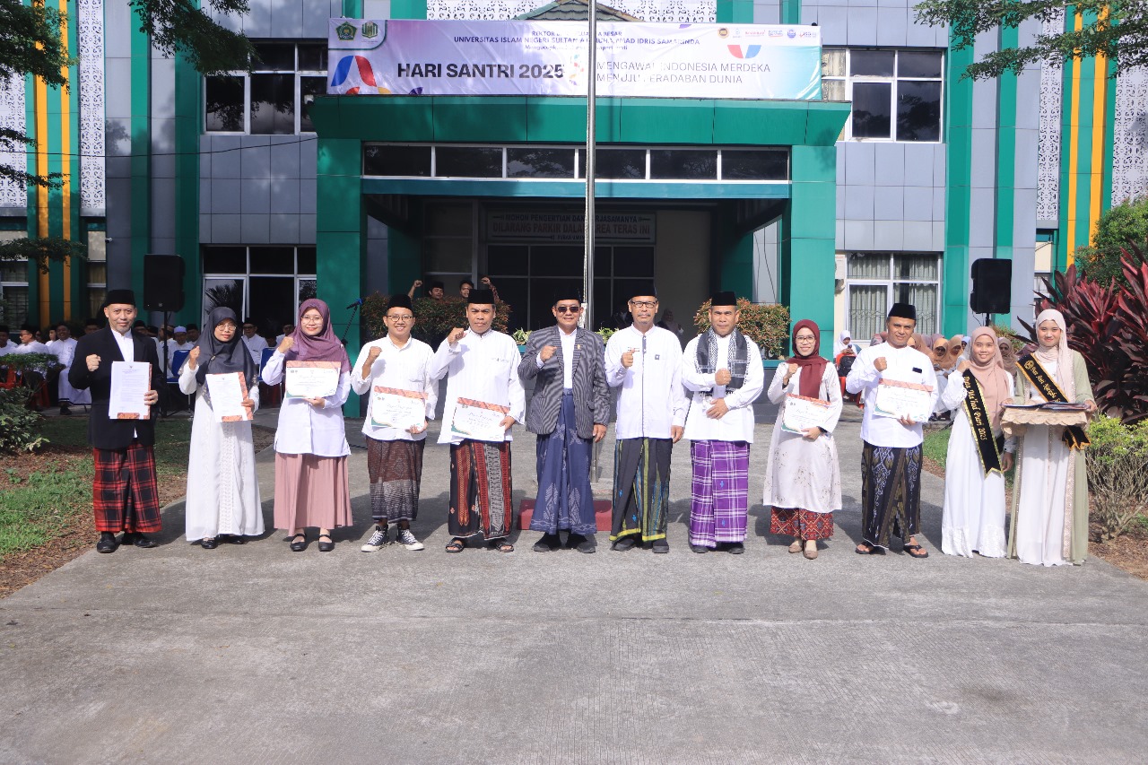 SAMARINDA, UINSI NEWS — Rektor Universitas Islam Negeri Sultan Aji Muhammad Idris Samarinda (UINSI), Prof. Dr. Zurqoni, M.Ag., memberikan penghargaan kepada lembaga dan program studi berprestasi sebagai bagian dari rangkaian Apel Peringatan Hari Santri Nasional 2025, di halaman Rektorat Kampus II pada Rabu (22/10/2025).