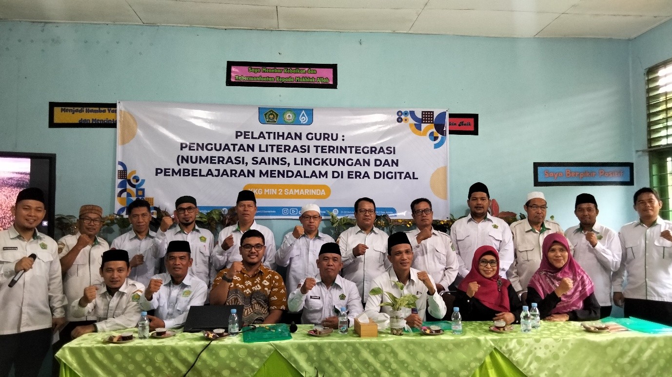 Selama dua hari pelatihan, semua guru MIN 1 dan MIN 2 samarinda mendapatkan pembekalan mengenai desain pembelajaran berbasis deep learning dan penguatan literasi terintegrasi yang meliputi aspek numerasi, sains, dan lingkungan. Kegiatan ini menghadirkan dua narasumber yaitu Bapak Abdul Razak, M.Pd. dan Bapak Arista Wibowo, M.Pd, yang berperan sebagai fasilitator literasi. Keduanya memberikan materi inspiratif tentang pentingnya pembelajaran kontekstual dan bermakna di era digital.