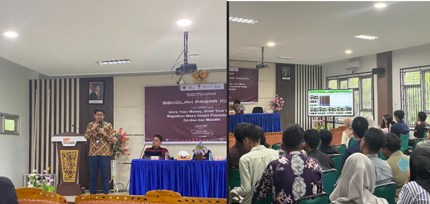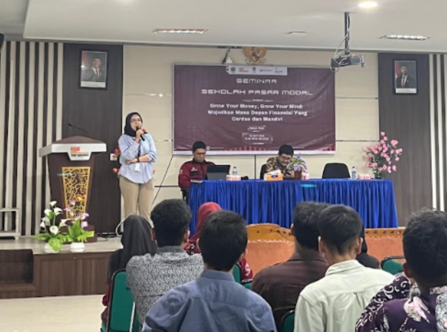 Sementara itu, Ega Priamay, Branch Representative Phintraco Sekuritas, memaparkan langkah-langkah praktis dalam pembuatan akun sekuritas serta mekanisme jual beli saham. Ia juga memberikan panduan kepada peserta agar dapat berinvestasi dengan aman melalui platform resmi yang terdaftar di BEI.