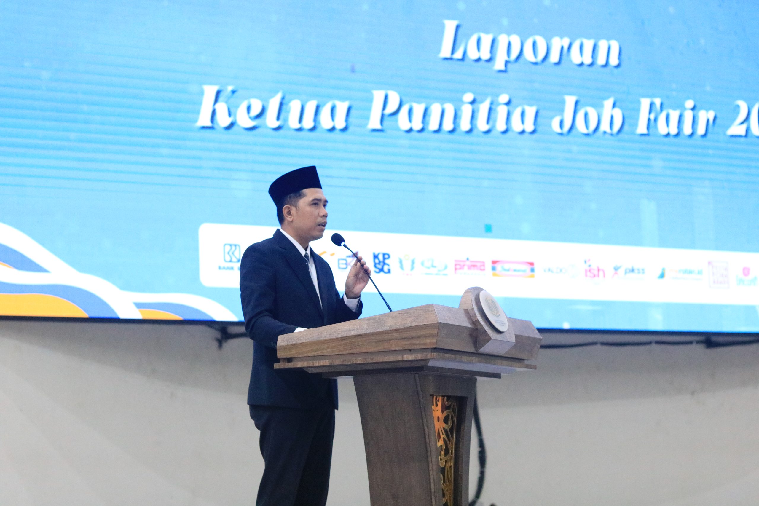 Acara dibuka dengan sambutan Kepala PKMA, Gianto, S.Pd., S.IPI., M.Pd.I., yang menyampaikan apresiasi kepada seluruh mitra, khususnya Dinas Tenaga Kerja dan Transmigrasi (Disnakertrans) Kota Samarinda yang terus memberikan pendampingan dan dukungan dalam pelaksanaan Job Fair setiap tahunnya. Dalam laporannya, Gianto menyampaikan bahwa tahun ini terdapat 15 perusahaan yang berpartisipasi dengan menyediakan 295 lowongan pekerjaan. Hingga hari pertama, tercatat 240 alumni UINSI Samarinda telah mendaftar sebagai pencari kerja, belum termasuk pelamar dari kategori umum yang diperkirakan terus bertambah sepanjang kegiatan berlangsung.