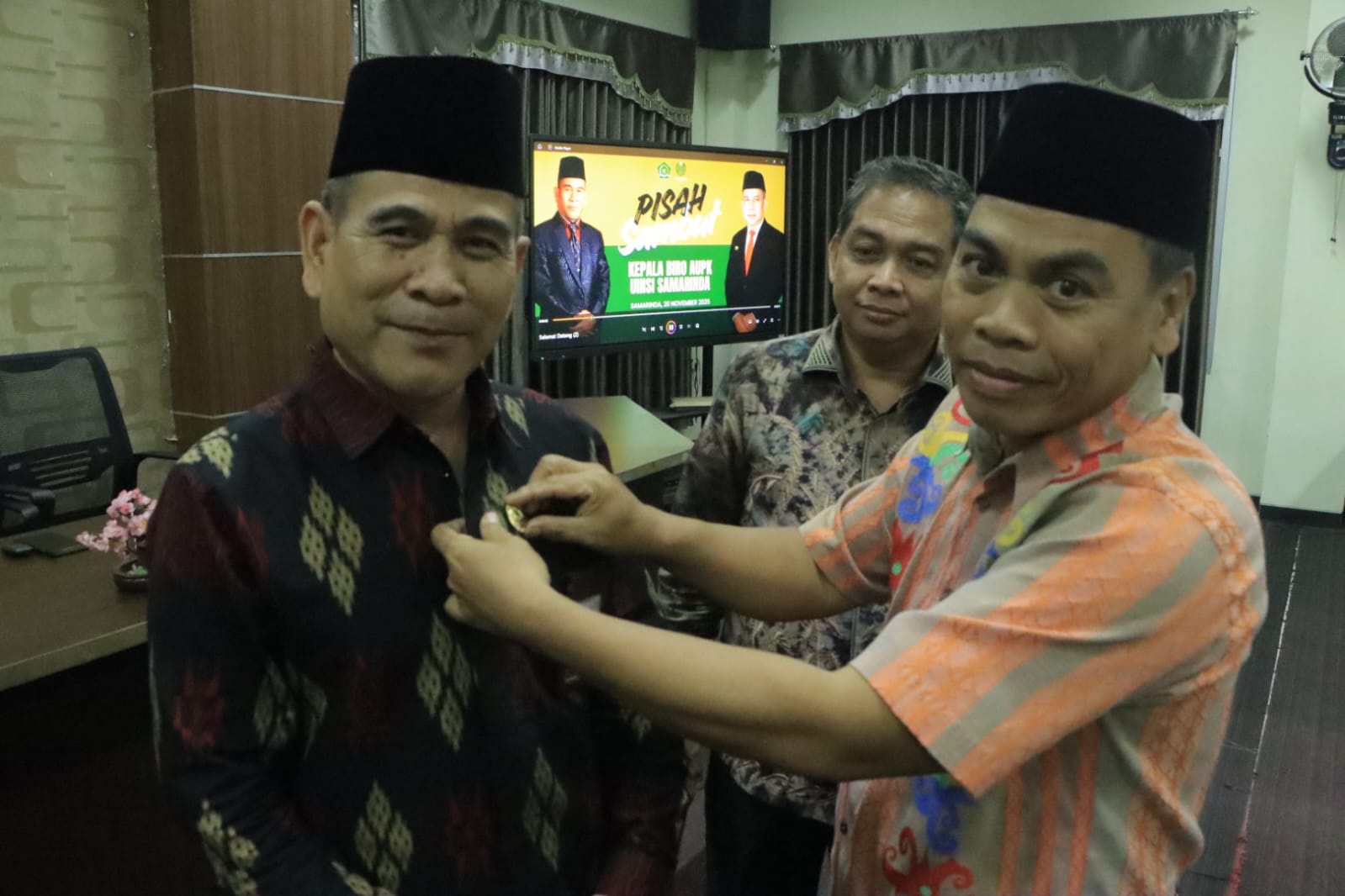 Acara tersebut menjadi momen perpisahan dengan Kabiro AUPK sebelumnya, Dr. H. Win Hartan, S.Ag., M.Pd.I., sekaligus penyambutan Kabiro AUPK yang baru, Dr. H. Taufik Rahman, S.Ag, M.Pd.