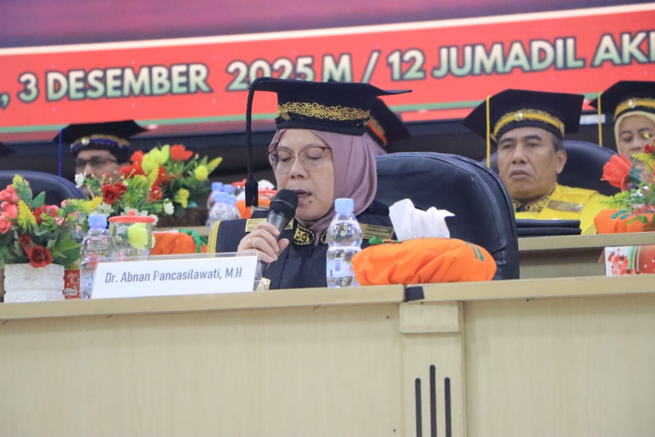Sidang Senat Terbuka yang menjadi wisuda terakhir di tahun 2025 ini dibuka oleh Plt. Ketua Senat, Dr. Abnan Pancasilawati, M.H.