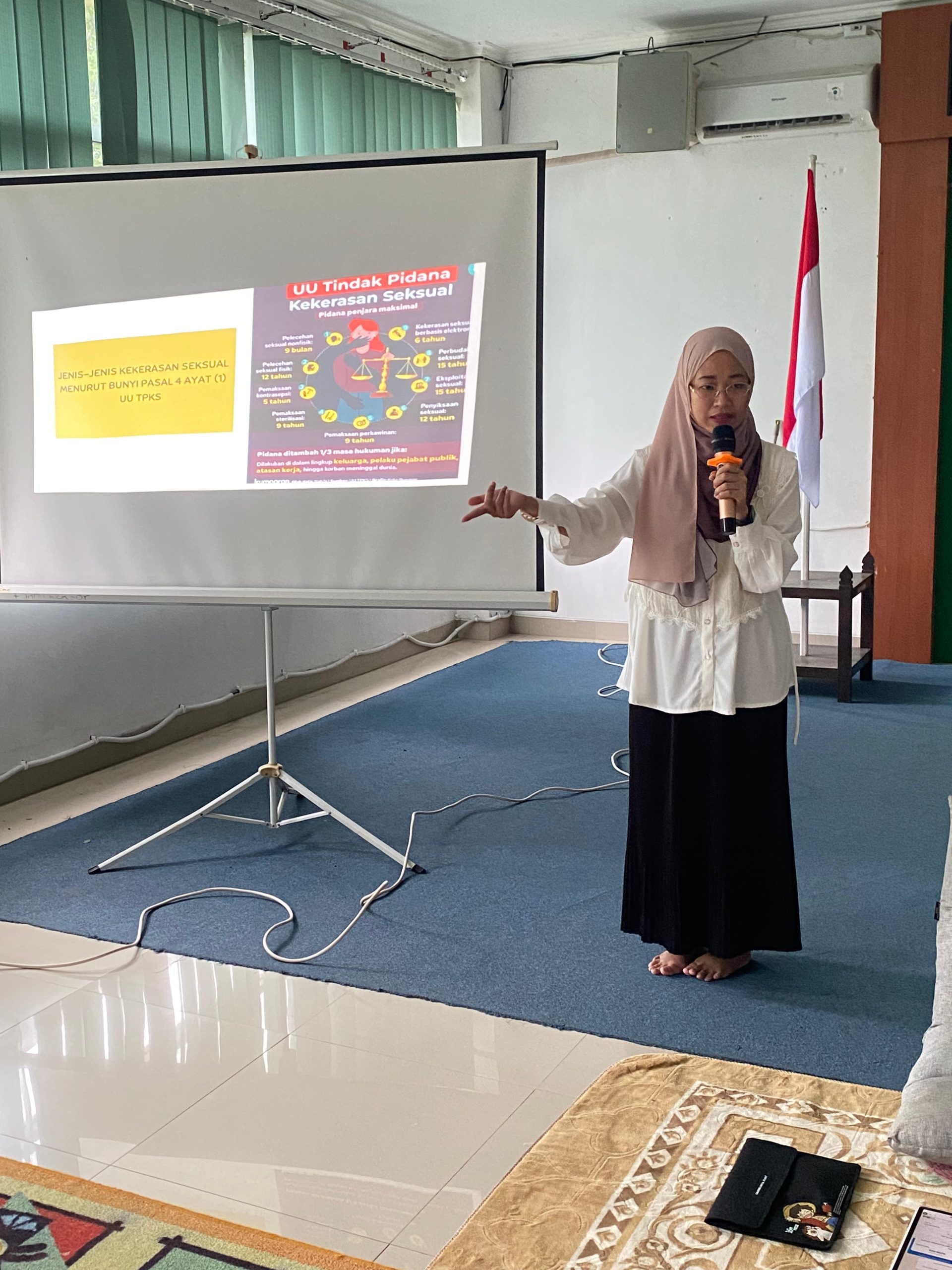 Kegiatan ini menghadirkan Rega Armella, M.Pd. sebagai narasumber utama yang juga merupakan anggota SATGAS PPKS PSGAD UINSI Samarinda.