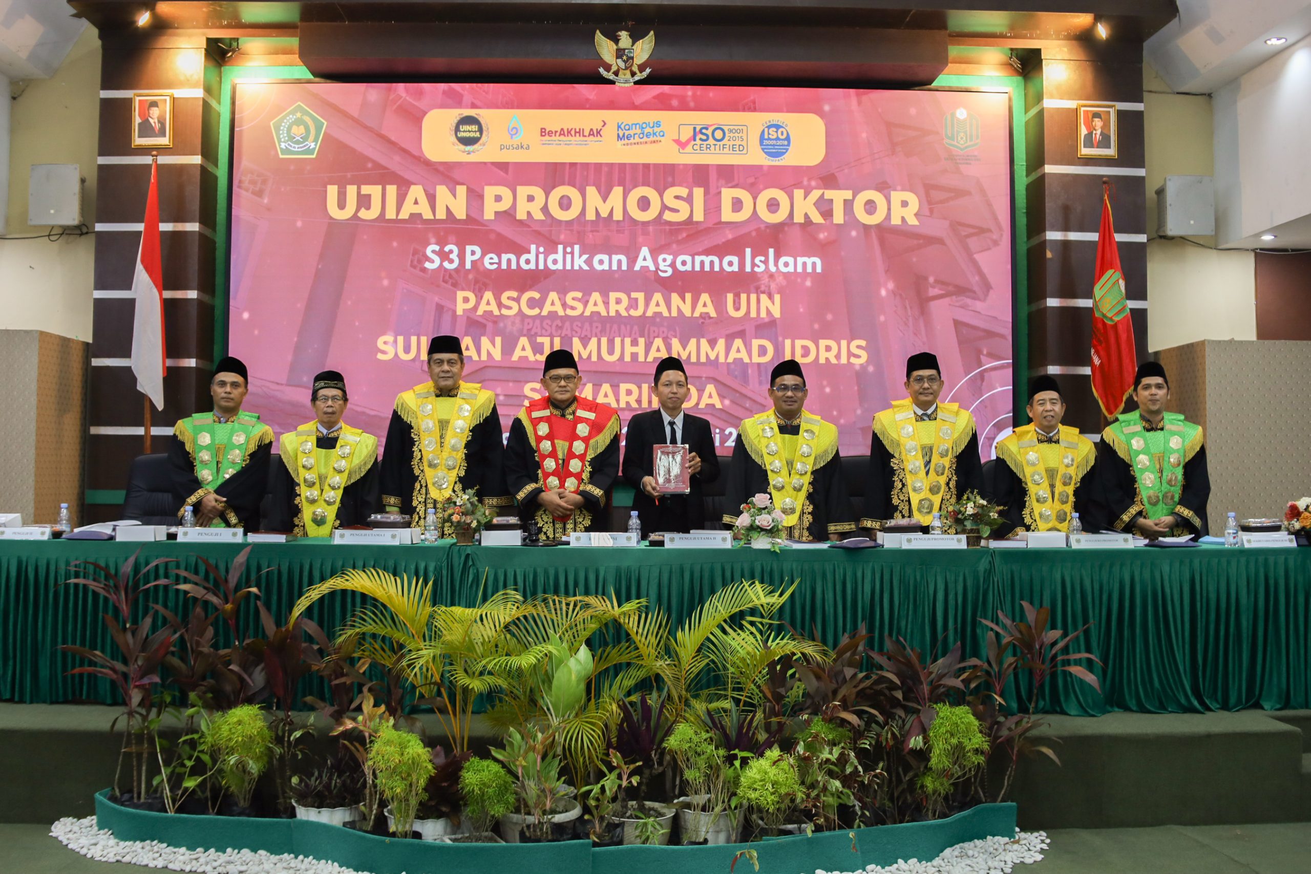 Ujian terbuka dipimpin Prof. Dr. H. Mukhamad Ilyasin, M.Pd. selaku ketua tim penguji dengan Dr. Agus Setiawan, M.Pd. sebagai sekretaris. Tim penguji terdiri atas Dr. Sugeng, M.Pd. (penguji utama), Prof. Dr. Zurqoni, M.Ag., Prof. Dr. Khojir, M.SI., dan Dr. Nur Kholik Afandi, M.Pd.