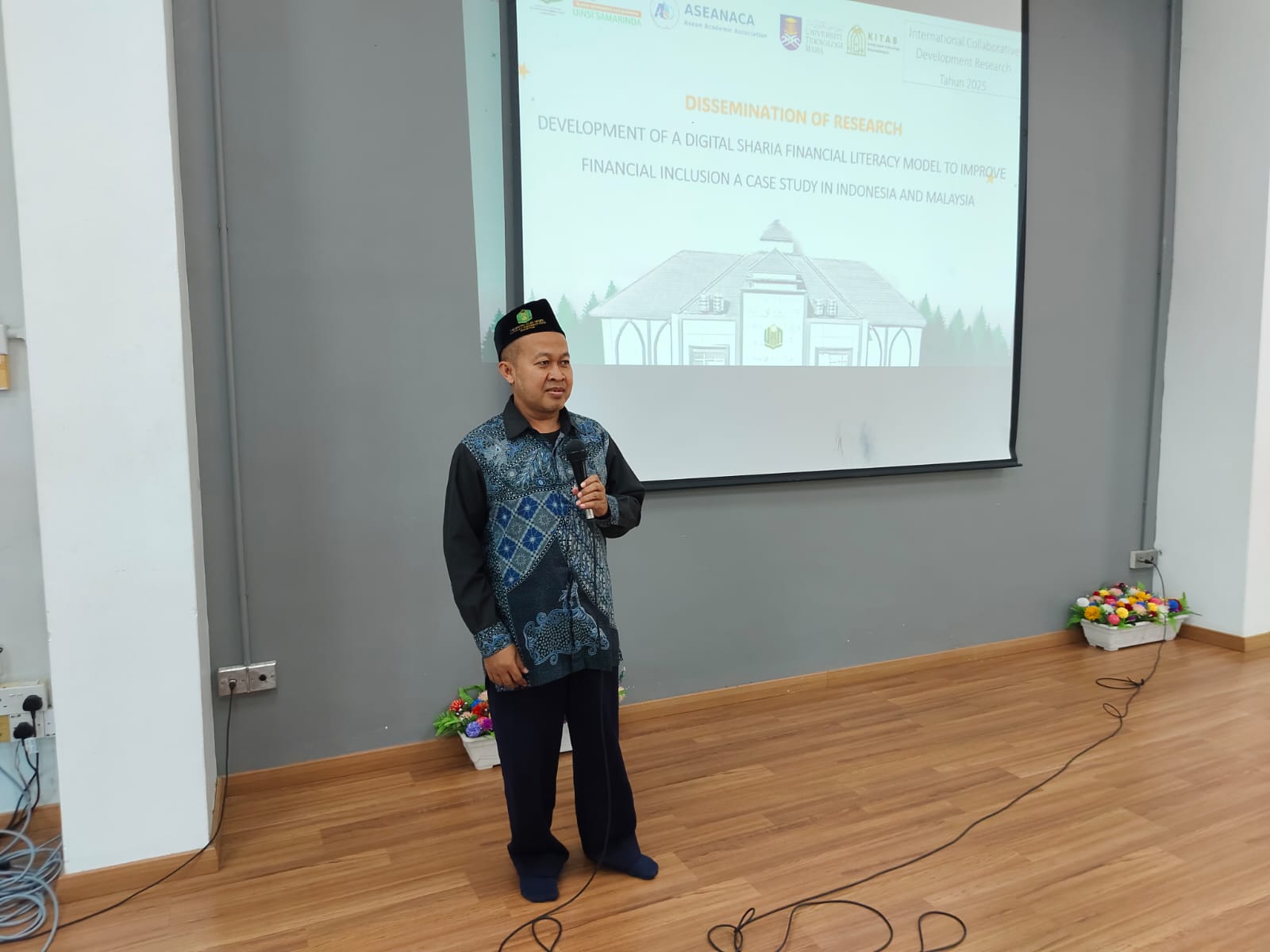 Diseminasi penelitian ini disampaikan oleh Dekan FEBI UINSI Samarinda Dr. H. Moh. Mahrus, M.HI bersama Ketua Jurusan Perbankan Syariah Nurul Fadhilah, M.E. Keduanya mempresentasikan tema penelitian berjudul: “DEVELOPMENT OF A DIGITAL SHARIA FINANCIAL LITERACY MODEL TO IMPROVE FINANCIAL INCLUSION: A CASE STUDY IN INDONESIA AND MALAYSIA.”