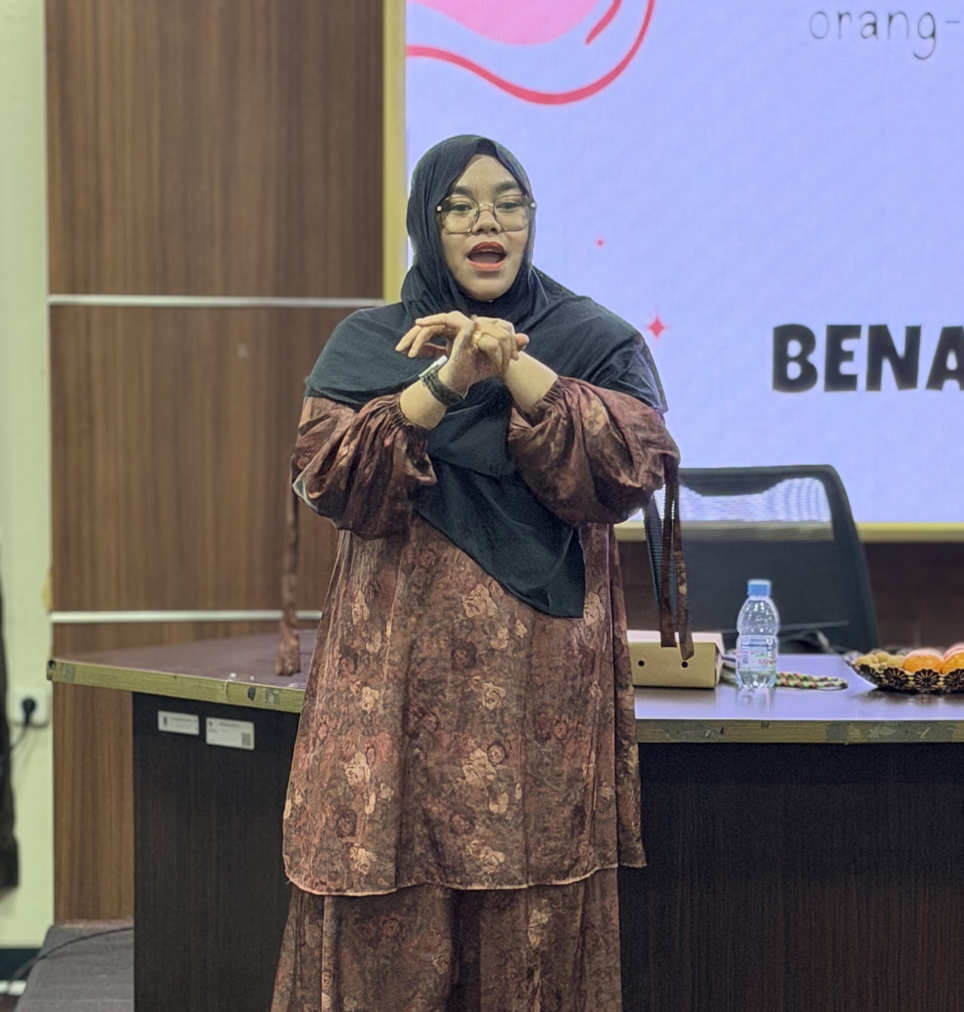Sesi yang paling dinantikan adalah pelatihan langsung mengenai bahasa isyarat Indonesia (BISINDO). Para peserta aktif mempelajari berbagai isyarat dasar, seperti abjad, sapaan, dan ucapan sehari-hari, yang disampaikan langsung oleh Retno Inggit, yang juga seorang penyandang tunarungu. Antusiasme peserta terlihat jelas ketika mereka mencoba mengucapkan salam dan kata-kata sederhana dalam bahasa isyarat, seperti “Assalamualaikum,” “Selamat pagi,” dan “Terima kasih.”