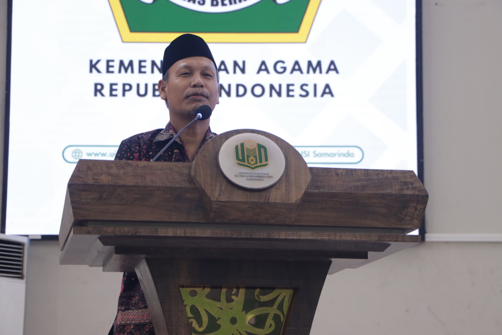 Wakil Rektor Prof. Dr. Muhammad Nasir, M. Ag., bidang Akademik dan Pengembangan Kelembagaan UIN Sultan Aji Muhammad Idris Samarinda, dalam sambutannya mewakili Rektor menyampaikan rasa syukur dan terima kasih atas kehadiran narasumber yang telah berkenan memberikan pengayaan keilmuan serta berbagi pengalaman demi pengembangan institusi. Prof. Nasir menegaskan bahwa kehadiran tenaga ahli Menteri Agama menjadi energi positif dalam memperkokoh peran UINSI sebagai kampus moderasi beragama dan penguatan nilai-nilai kebangsaan.