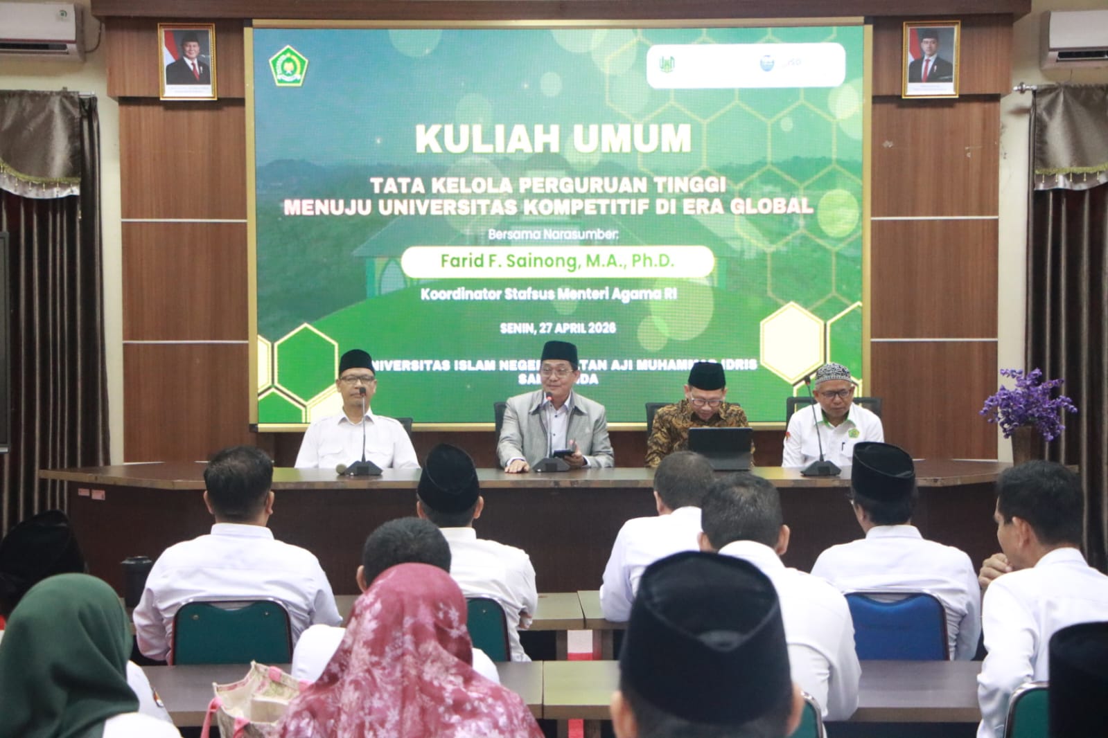 UINSI NEWS – Universitas Islam Negeri Sultan Aji Muhammad Idris (UINSI) Samarinda terus memperkuat langkah menuju kampus berdaya saing global melalui penyelenggaraan kuliah umum bertajuk Tata Kelola Perguruan Tinggi Menuju Universitas Kompetitif di Era Global, Sabtu (27/4) di Aula Lantai III Rektorat UINSI.