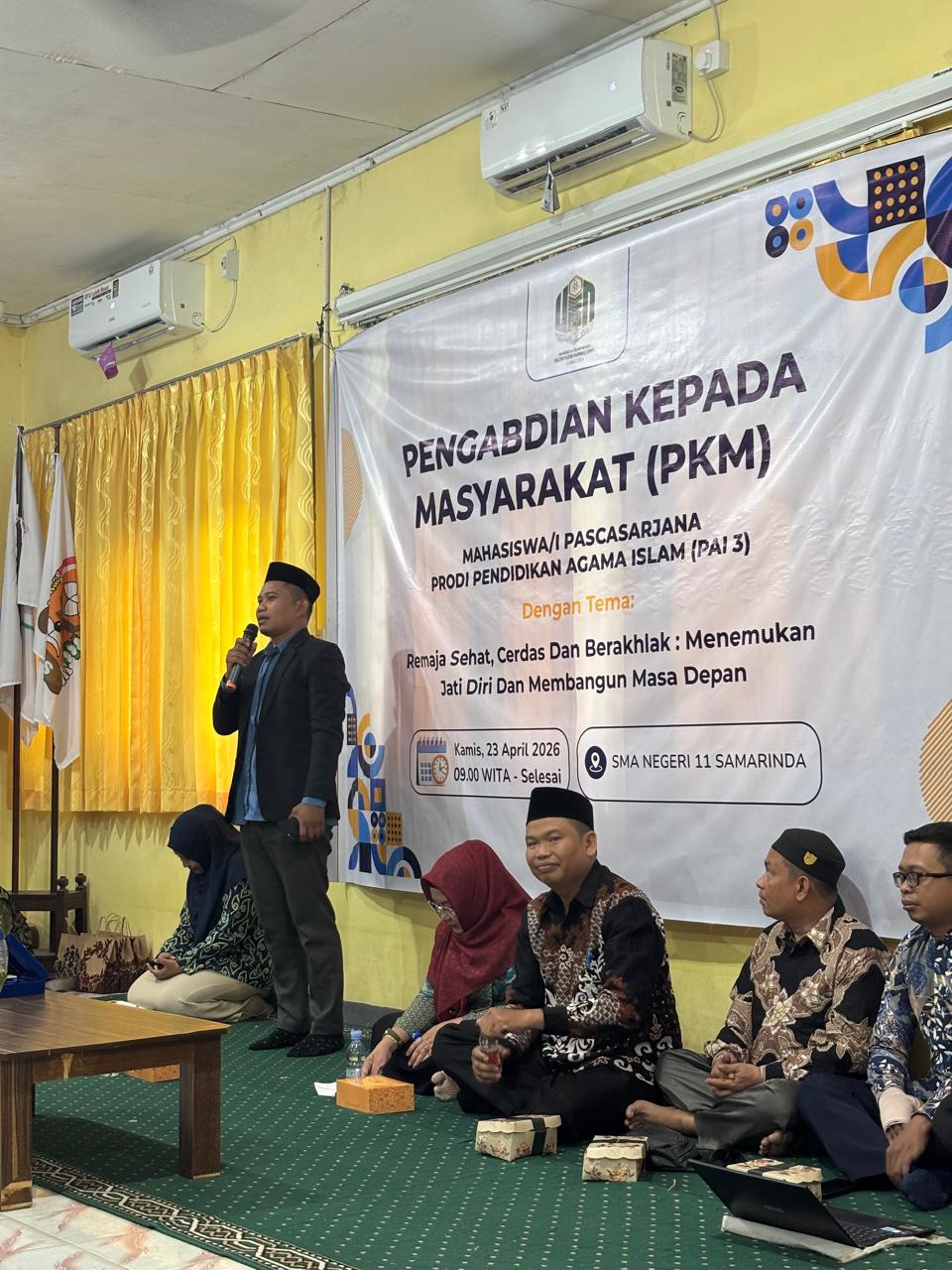 SAMARINDA, UINSI NEWS – Mahasiswa Program Studi Pendidikan Agama Islam (PAI) 3 Pascasarjana Angkatan 2025 UIN Sultan Aji Muhammad Idris Samarinda melaksanakan kegiatan Pengabdian kepada Masyarakat (PKM) dalam bentuk seminar bertema “Remaja Sehat, Cerdas, dan Berakhlak: Menemukan Jati Diri dan Membangun Masa Depan”. Kegiatan tersebut berlangsung di SMA Negeri 11 Samarinda, Kamis (23/4).